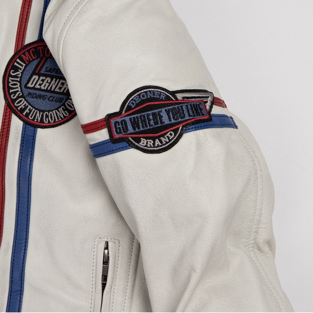 トリコロールカラーで、バイクや年齢を選ばない、カジュアルなスタイル。