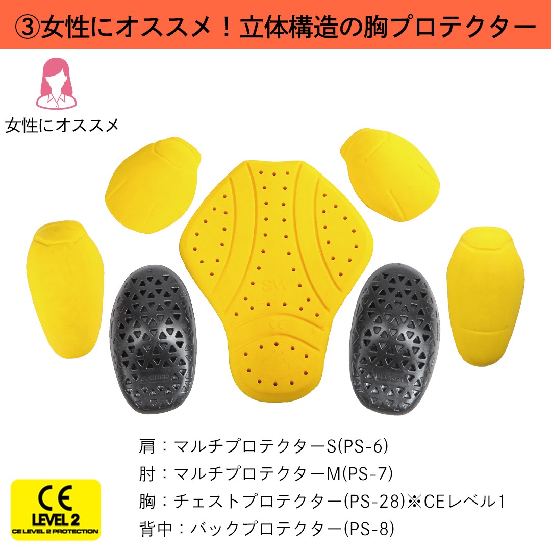 部位 | 肩・肘・背中・胸用(すべてCE規格レベル2)※肩:PS-6、肘:PS-7、背中:PS-8、胸:PS-28 |