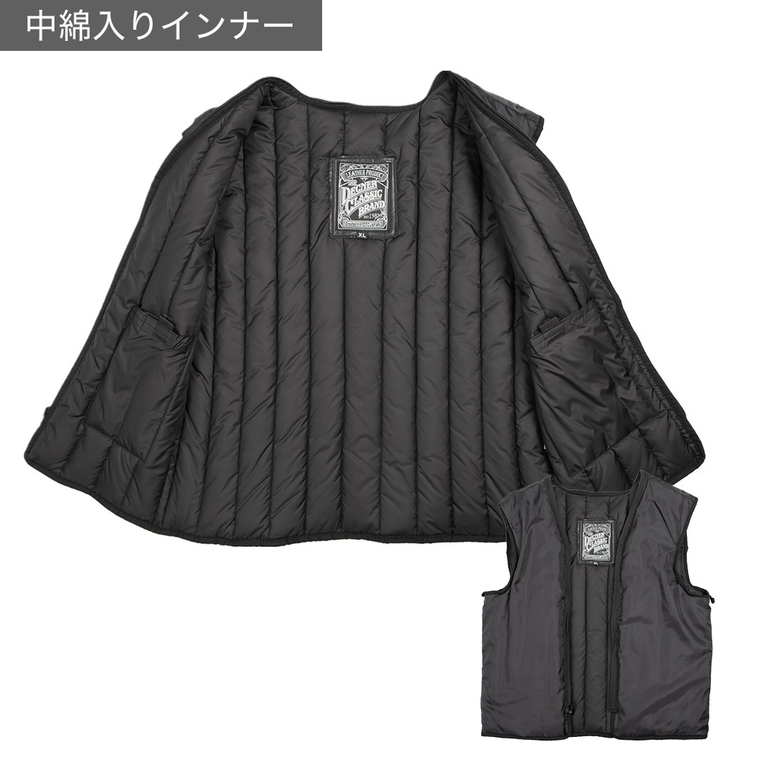 中綿入りインナーはファスナーで着脱でき、季節を問わず着られる。