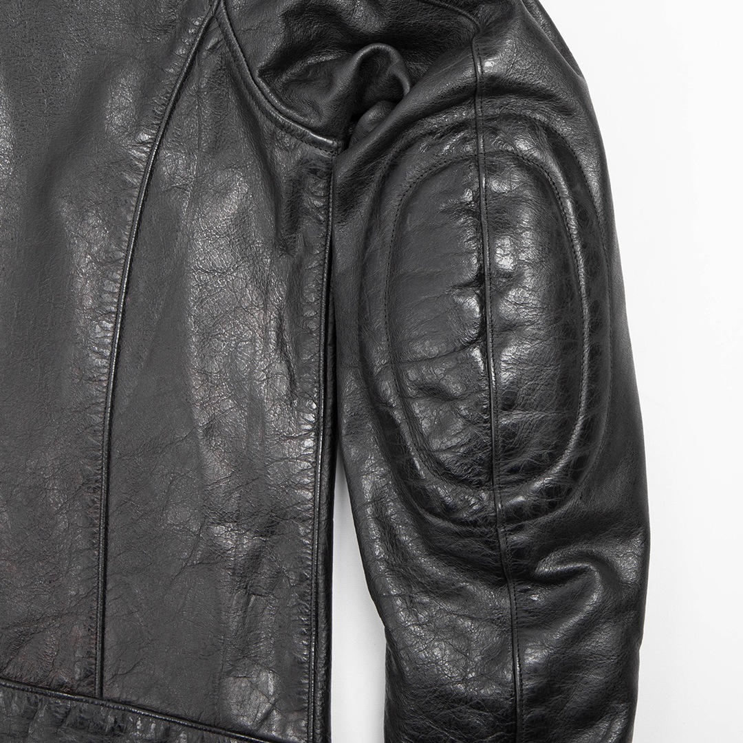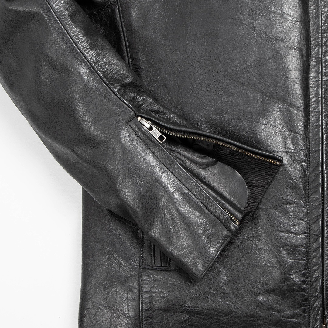 どっしりとした牛革をシンプルなシングルライダースに。