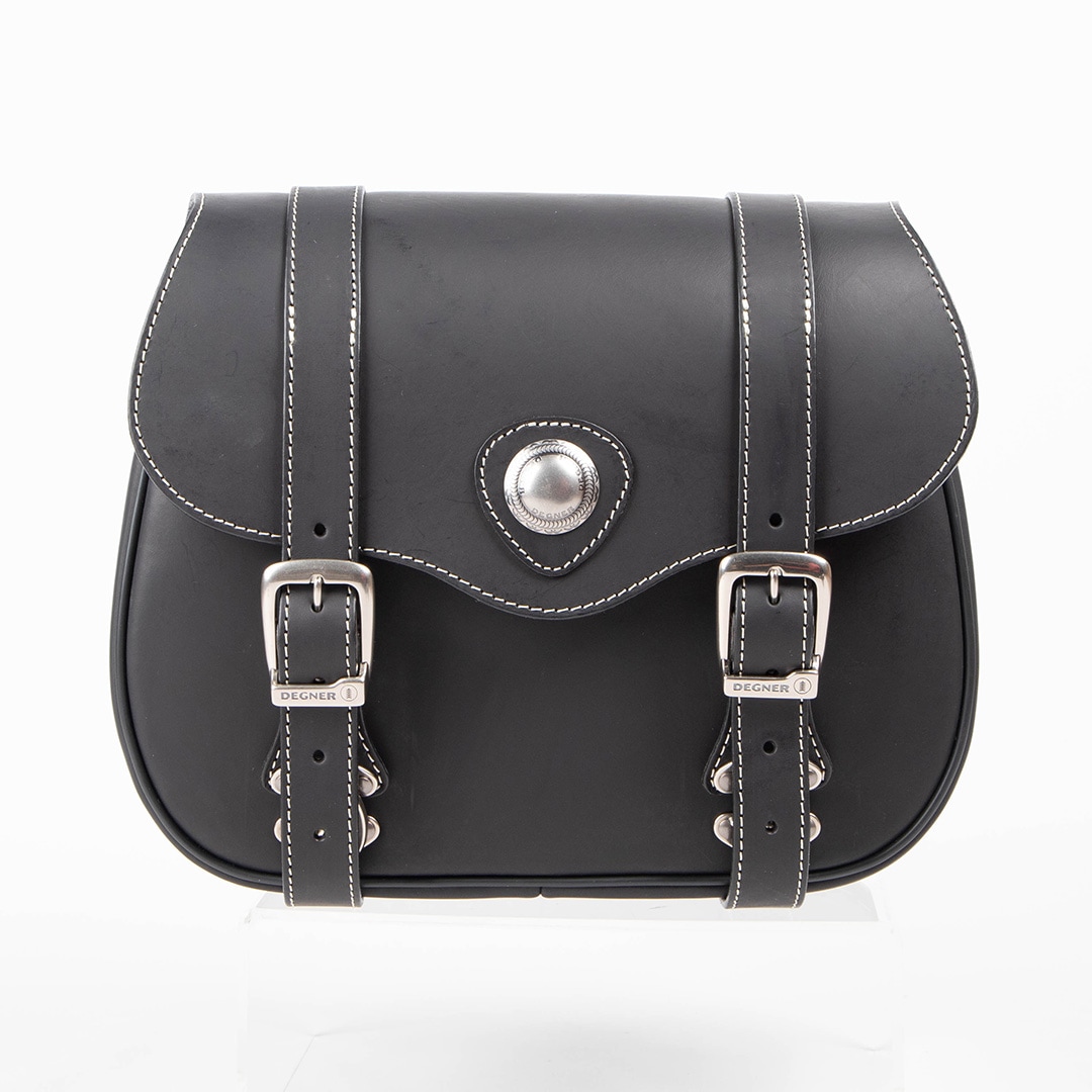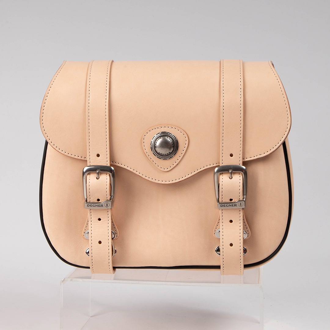中央のコンチョがポイント!長年愛されているレザーサドルバッグ。