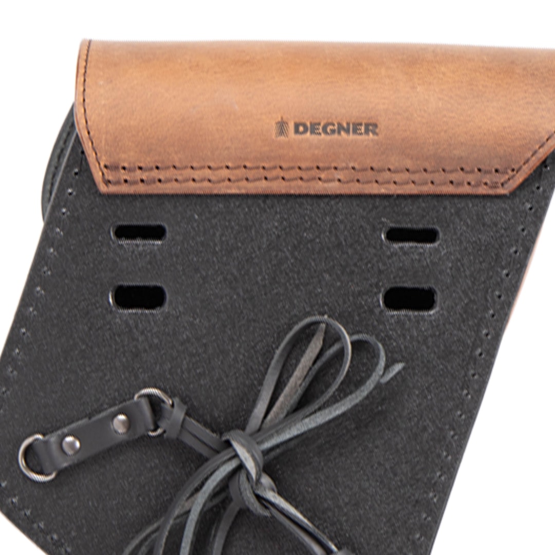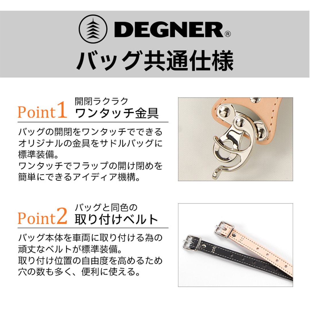 高級感のあるデグナーオリジナルのワンタッチ金具。グローブを着けたままでも開け閉め簡単。