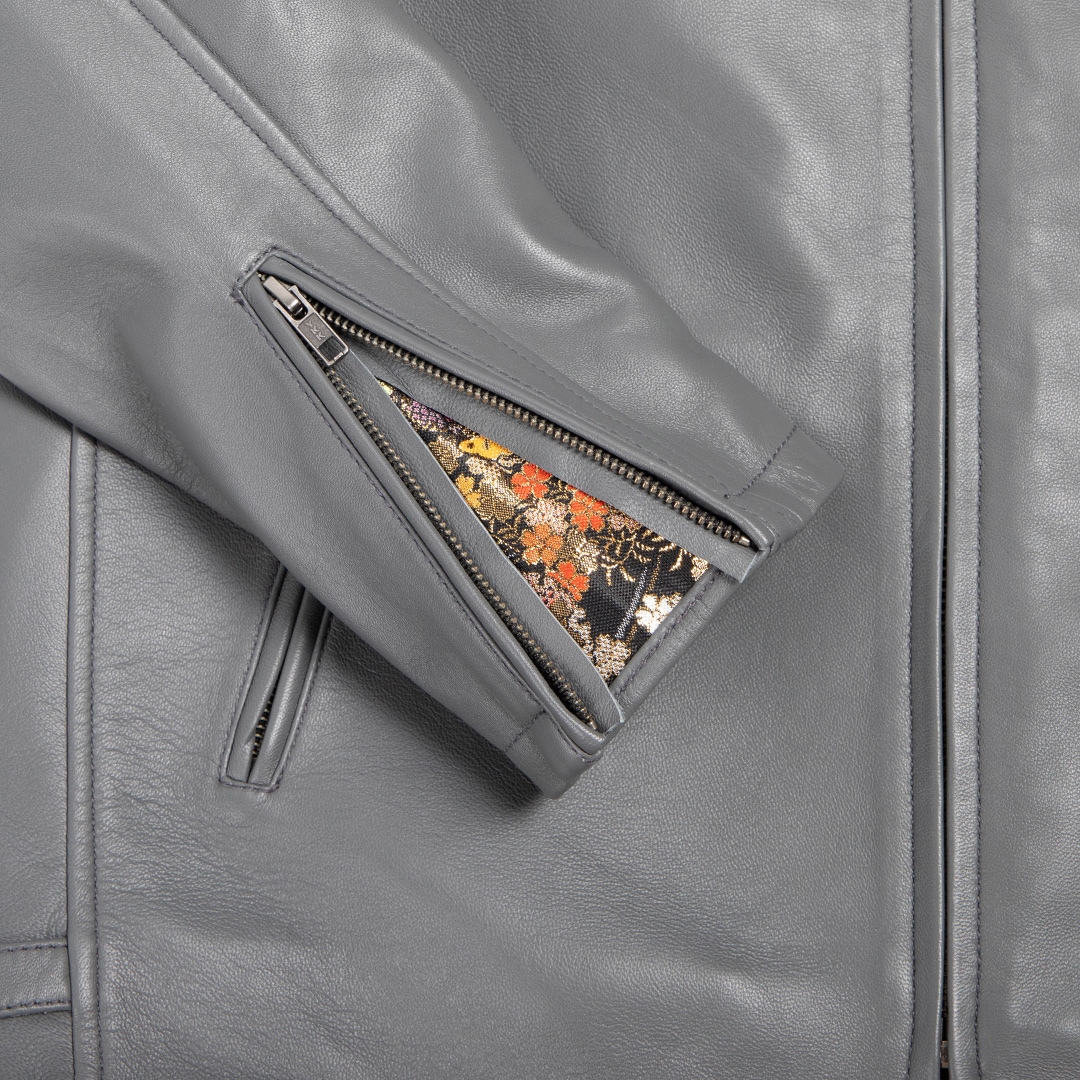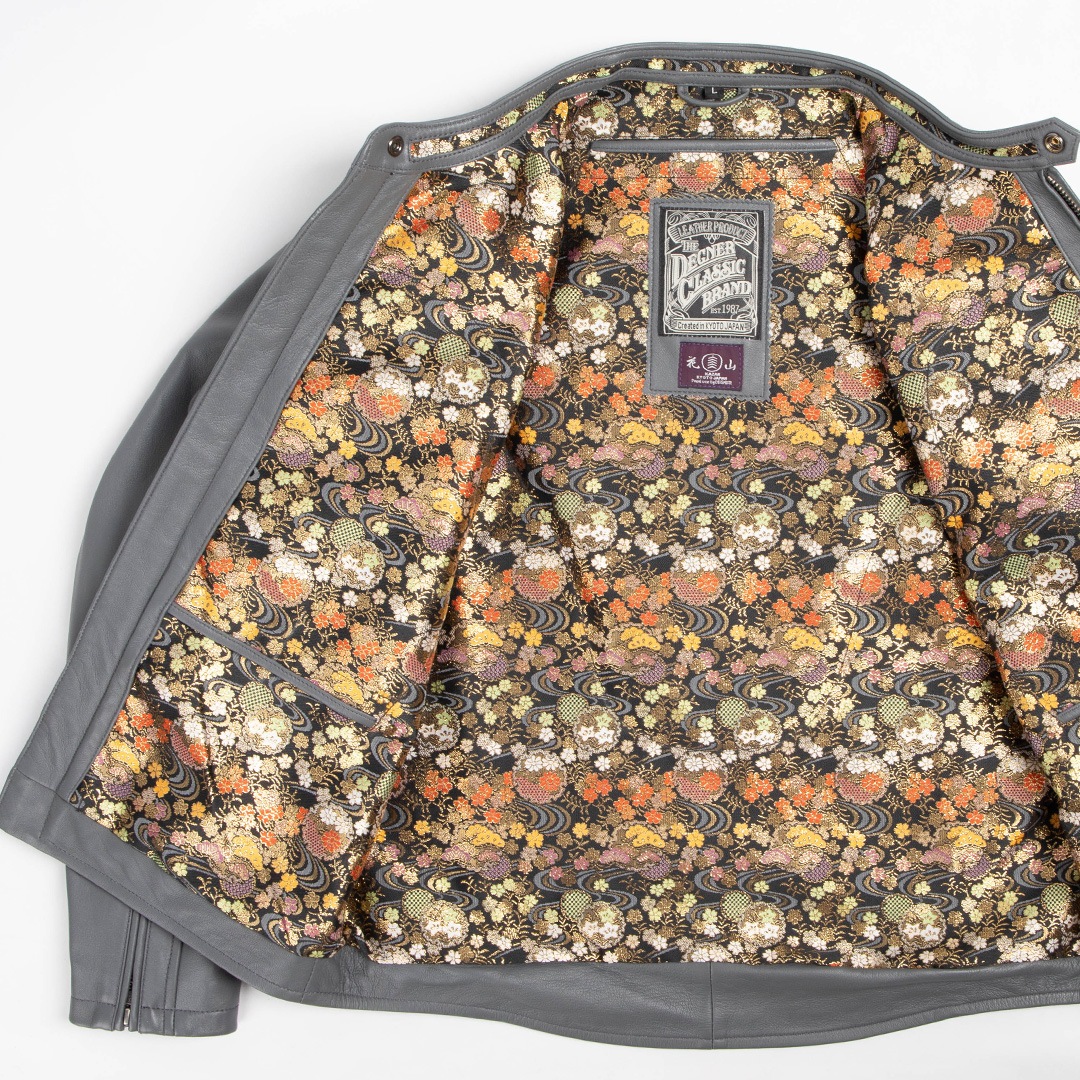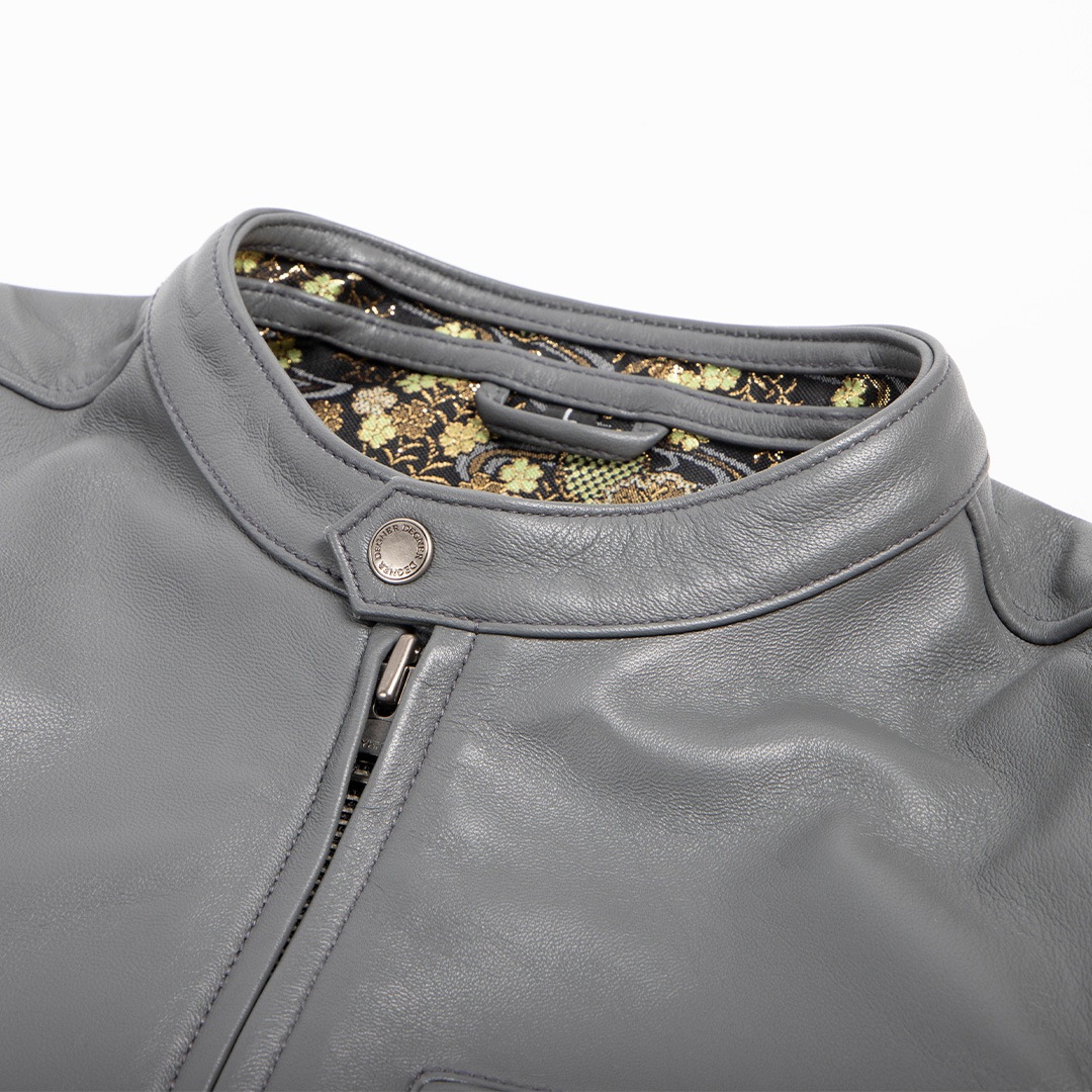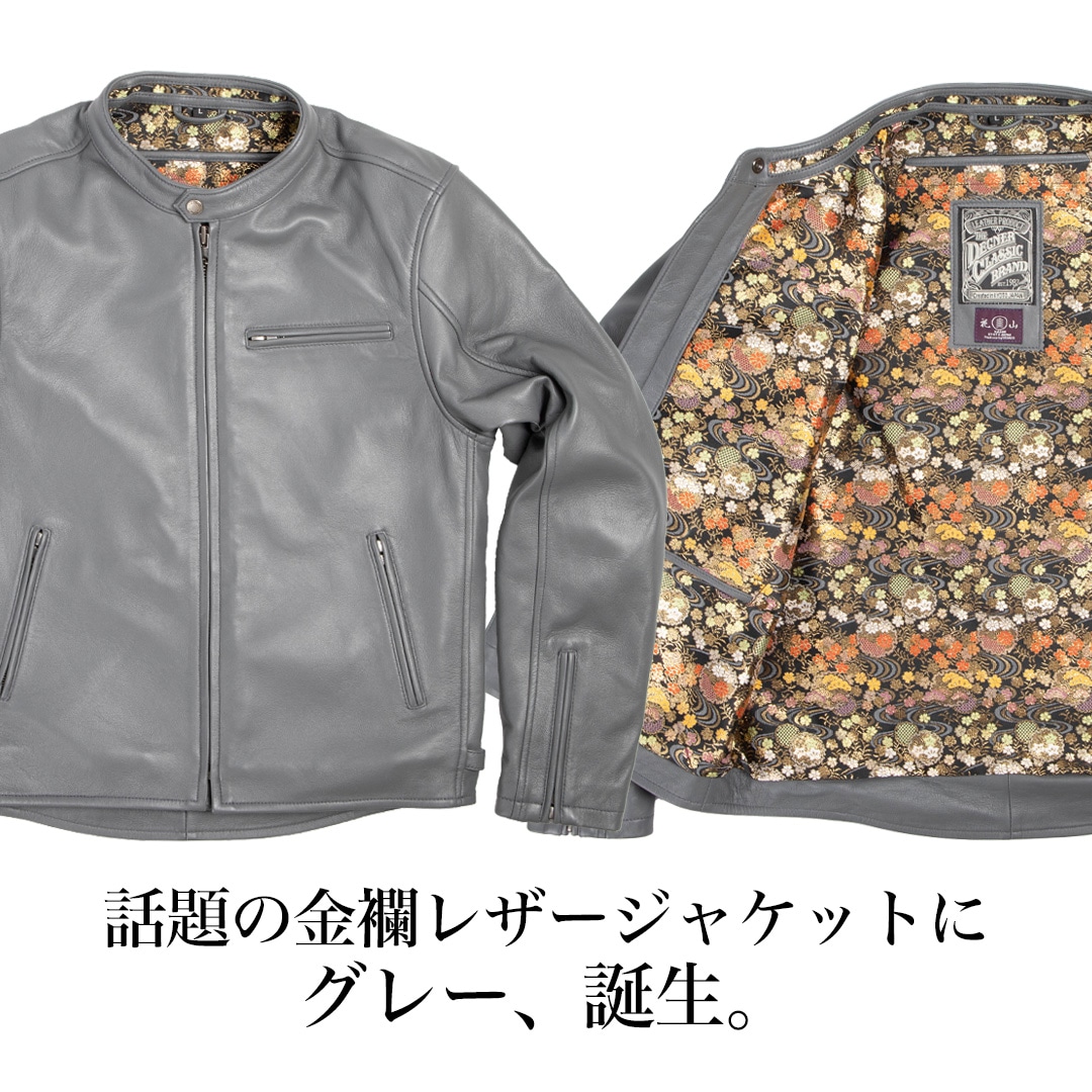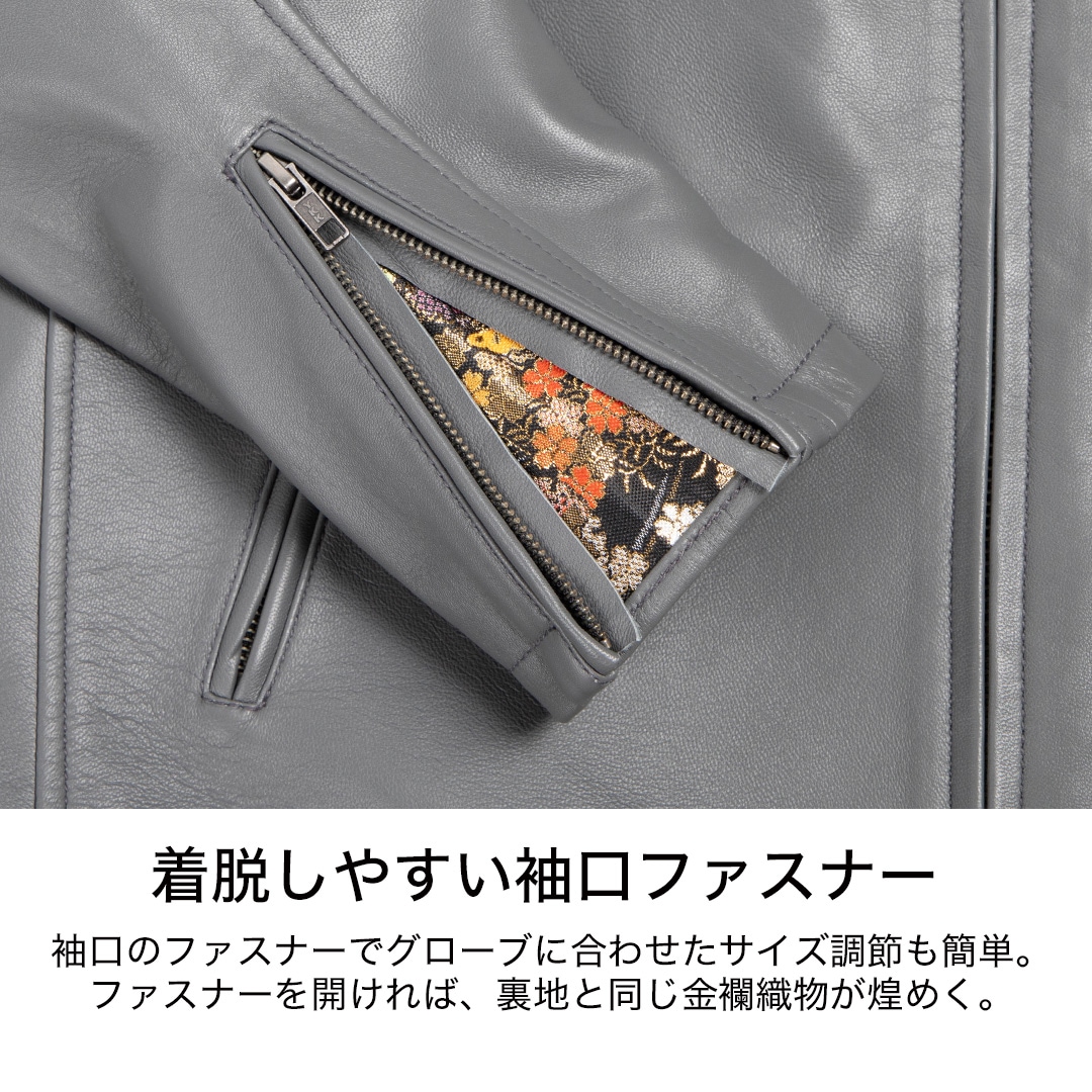 表側には本革、裏側には京都を思わせる金襴織物をふんだんに使ったジャケット。