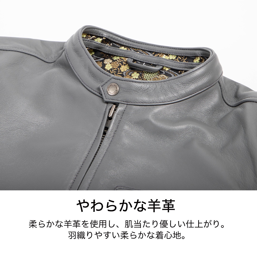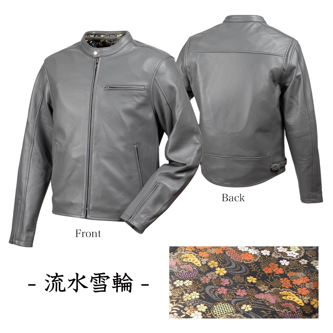 【Sサイズが追加になりました】金襴レザージャケット[21SJ-14K_鉄流水雪輪_桧垣桜_流水雪輪BK]