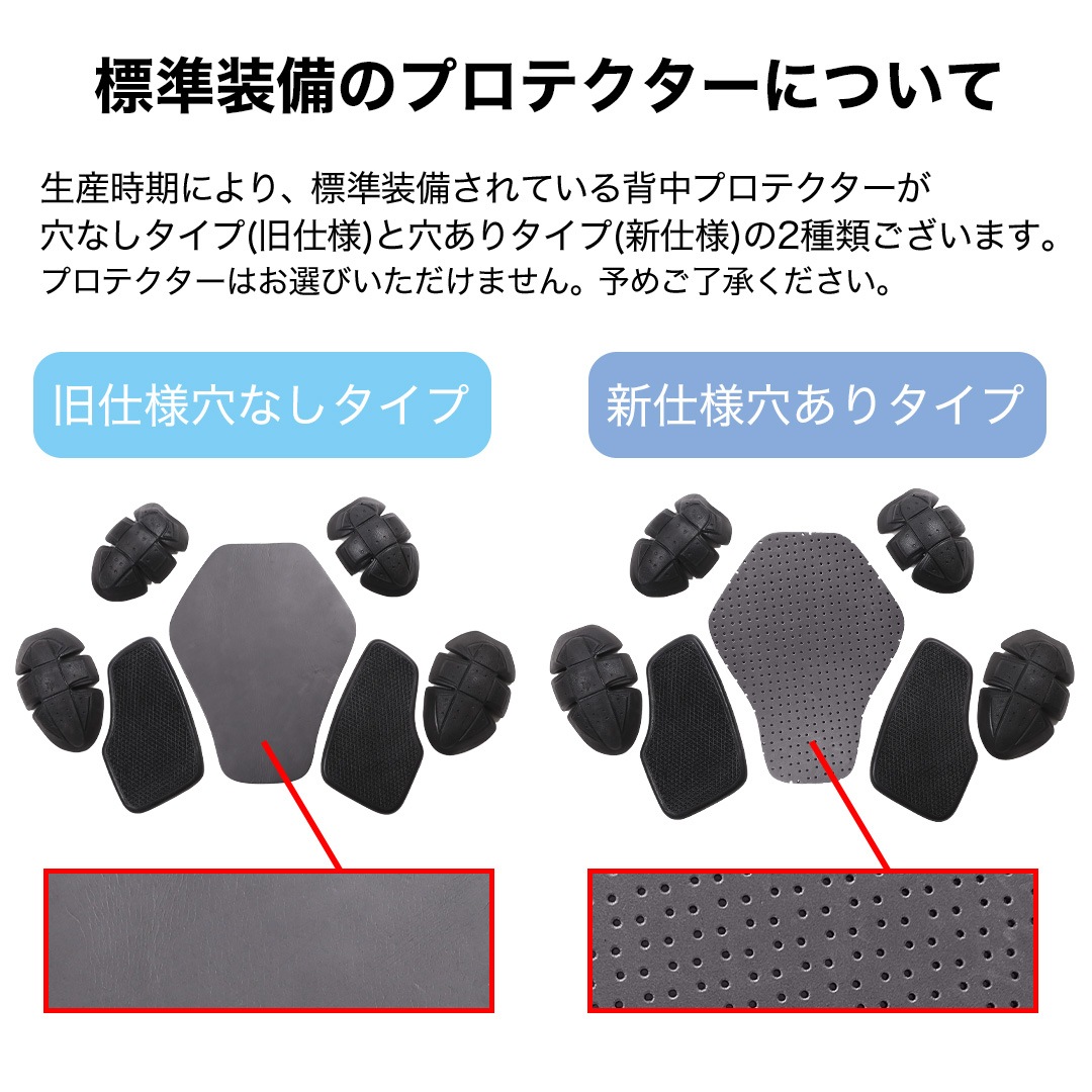 肩・肘・背中・胸にプロテクターを標準装備。お好みのプロテクターに入れ替え可能。