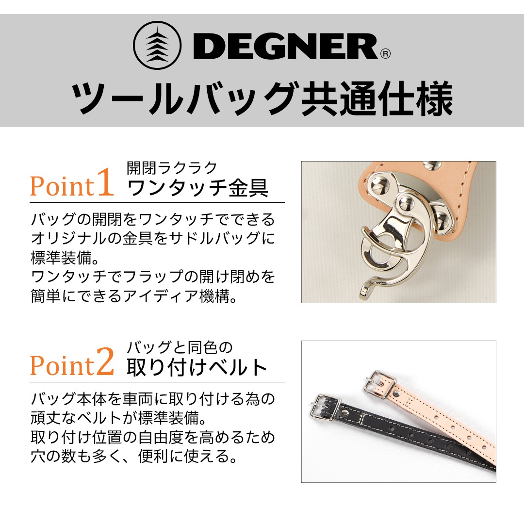 高級感のあるデグナーオリジナルのワンタッチ金具。グローブを着けたままでも開け閉め簡単。