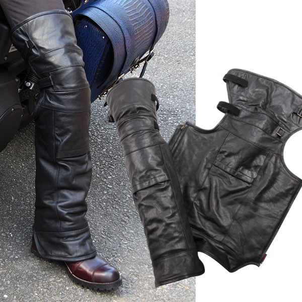 裏にフェイクファーを用いた、レザーブーツチャップスは、暖かさをしっかり保つ。