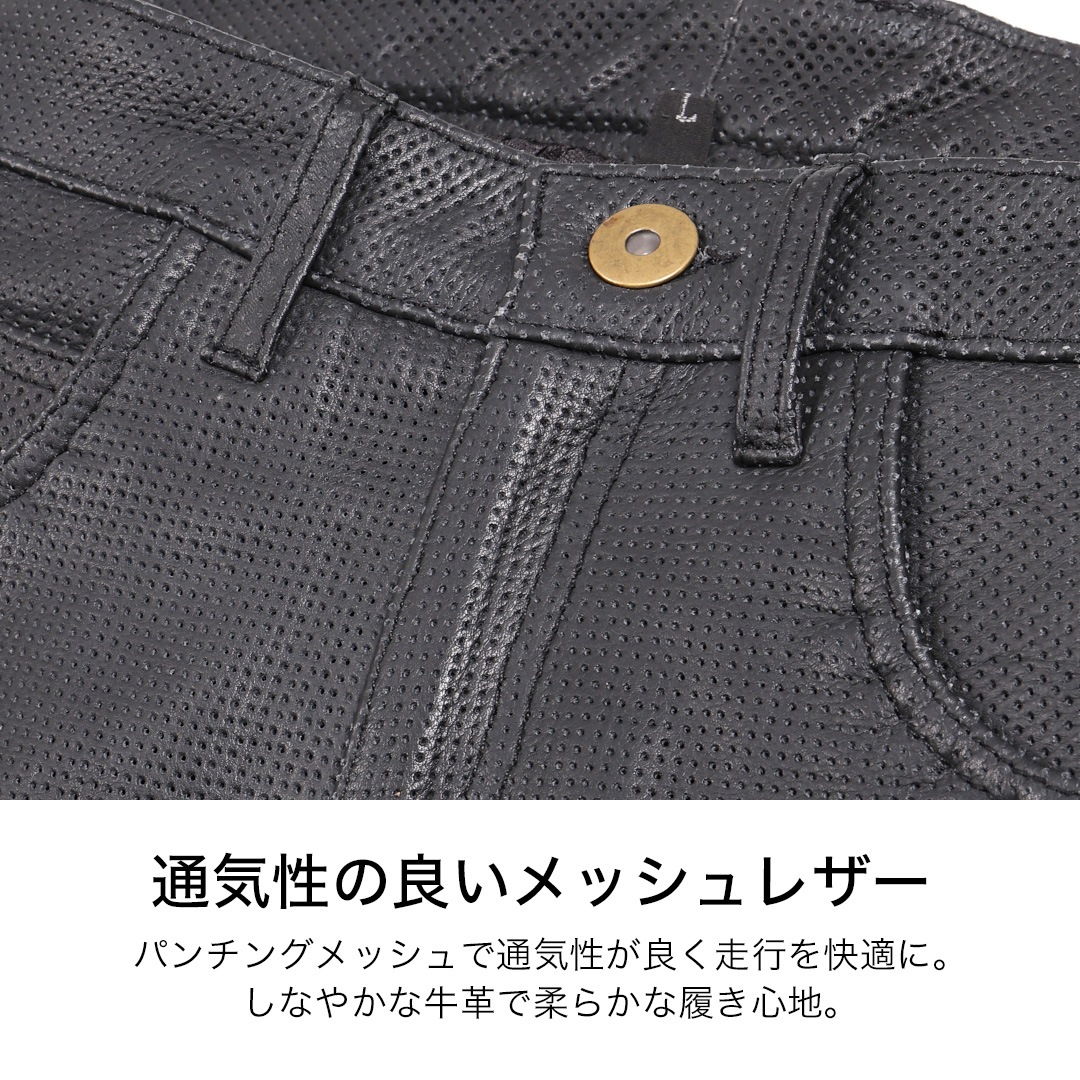 2XL追加決定。レザーパンツDP-28を、風を取り込み夏も快適なメッシュレザーに。