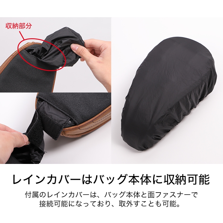 • バッグ本体は構造上、完全防水ではございません。収納物については、予め防水バッグ等に入れてから収納されるなど、対策を行ってください。
