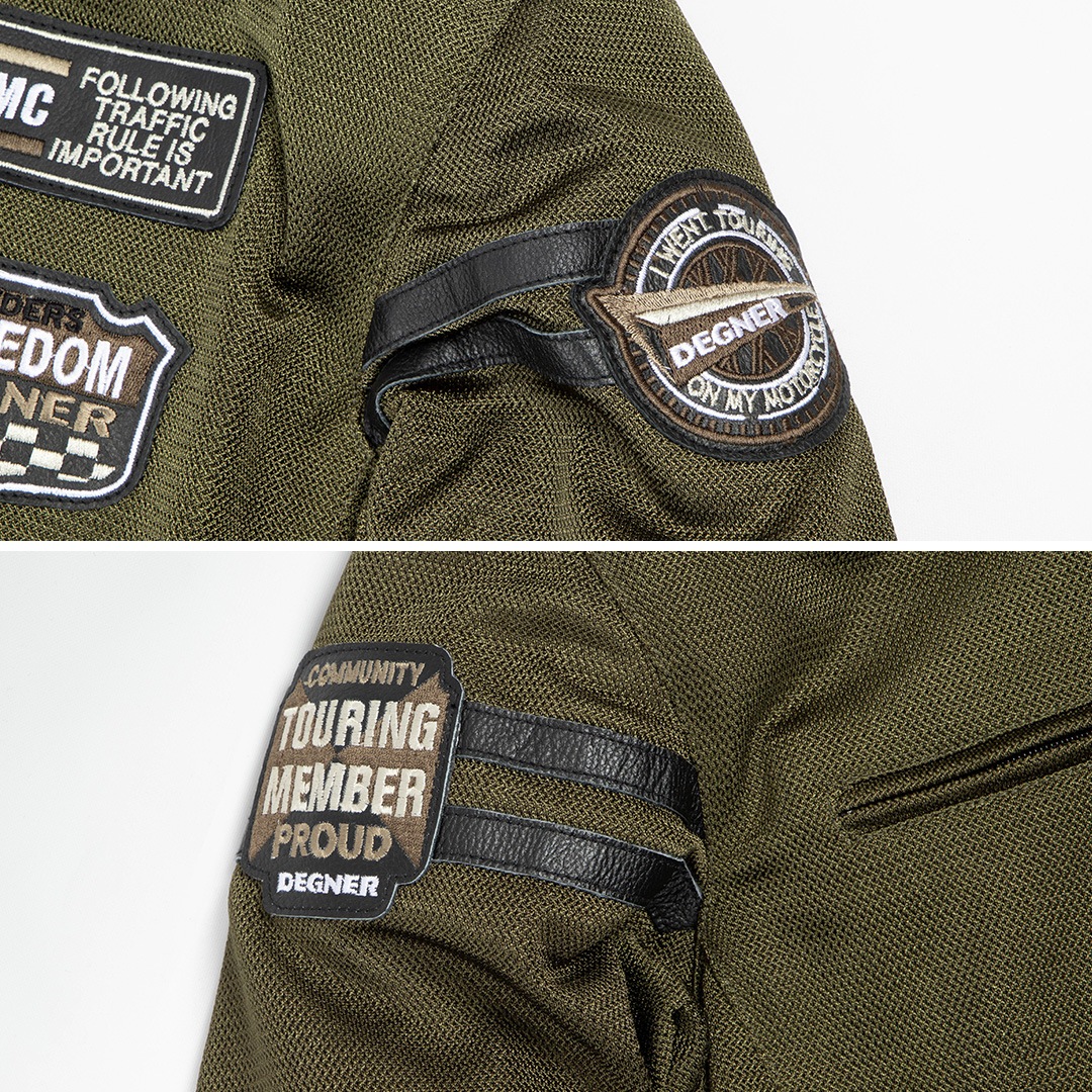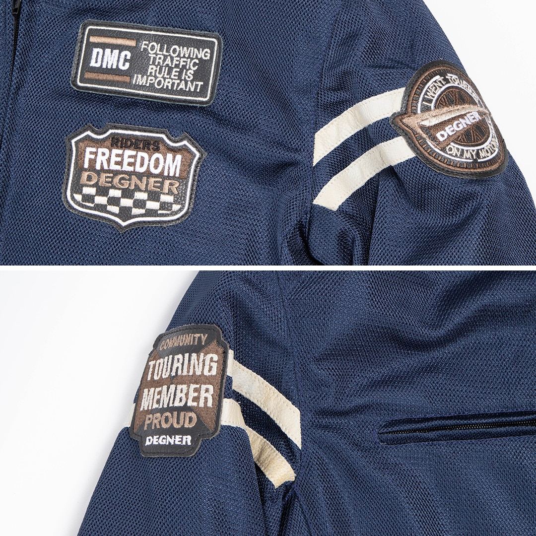モーターテイストな本革ワッペンを左胸・両腕に。派手すぎず地味すぎない、洗練された大人のおしゃれを体現。