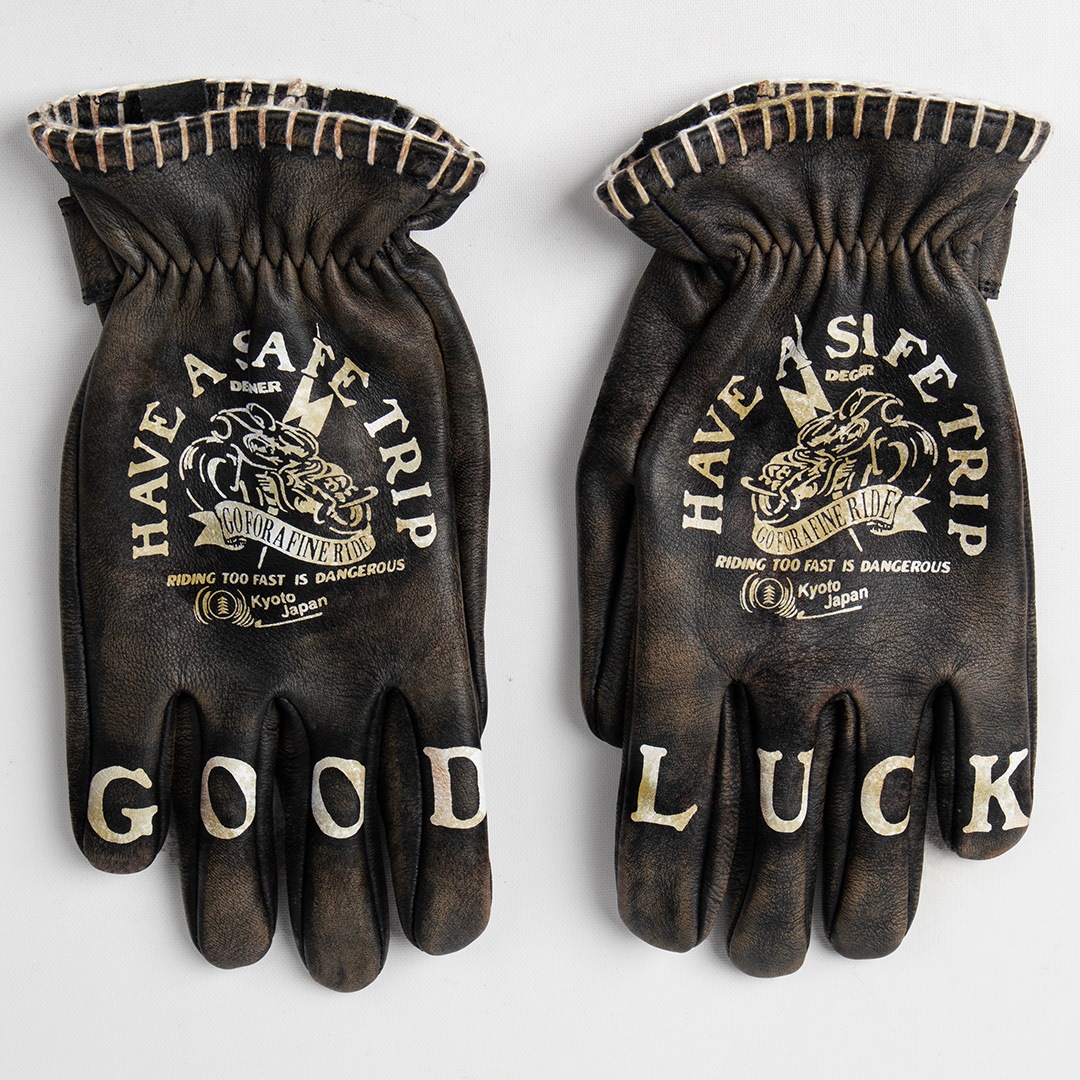 手の甲・指には、ライダーの安全を祈るアシンメトリーのプリント。