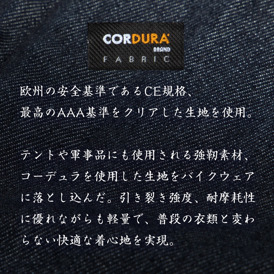 欧州の安全基準であるCE規格において最高のAAA基準をクリアしたCORDURA fabricを採用。