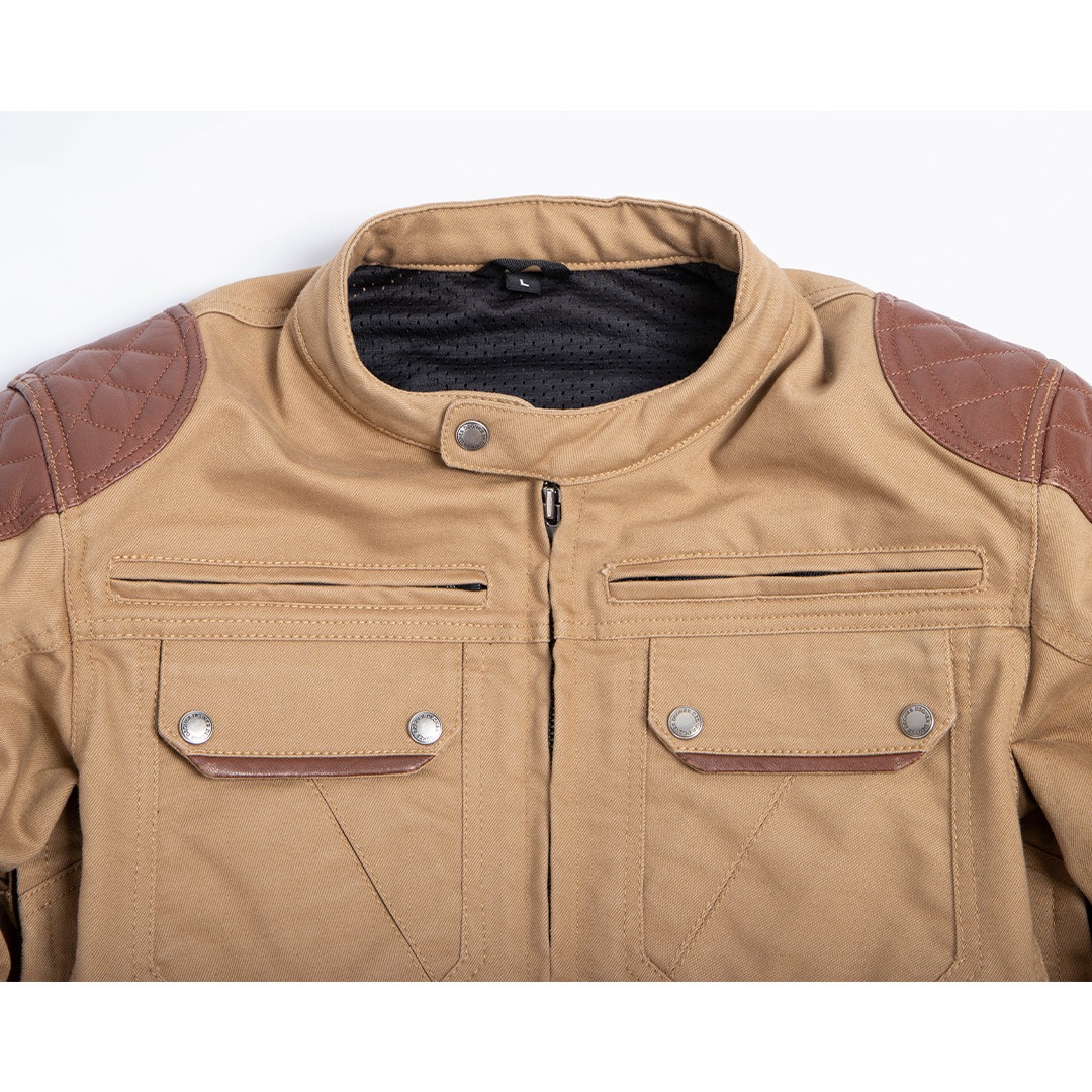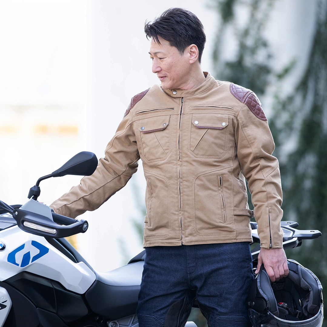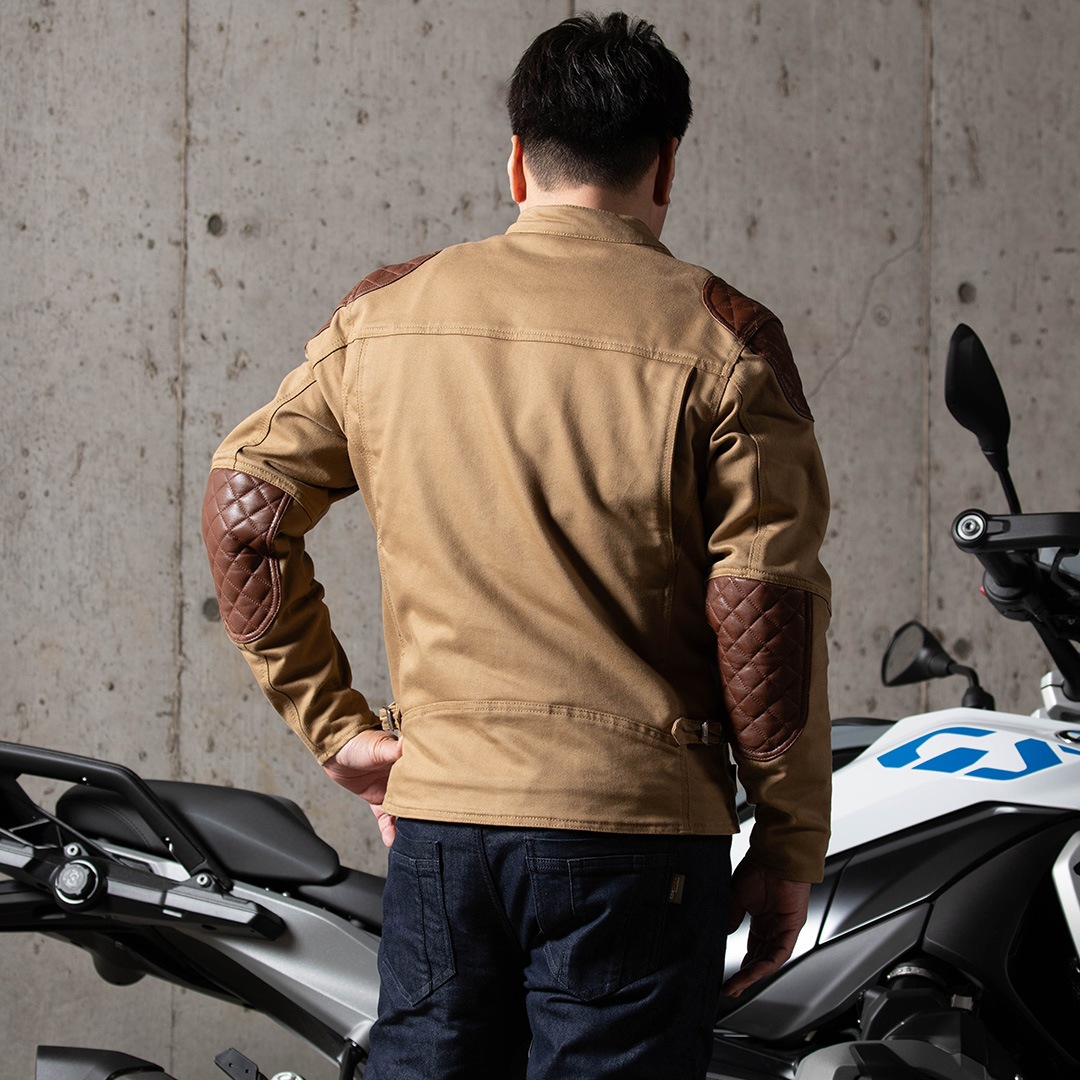 肩・肘の本革パテッドがアクセントのアドベンチャースタイルのジャケット。