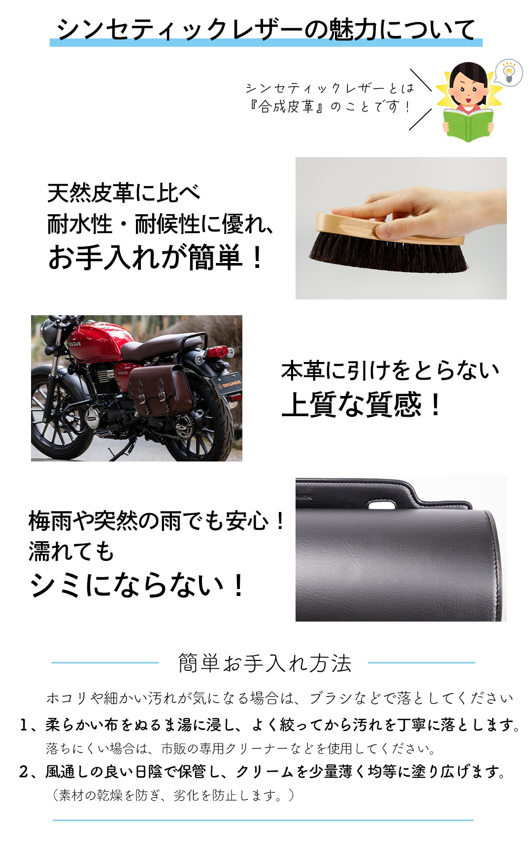お手入れ簡単!シンセティックレザーの魅力